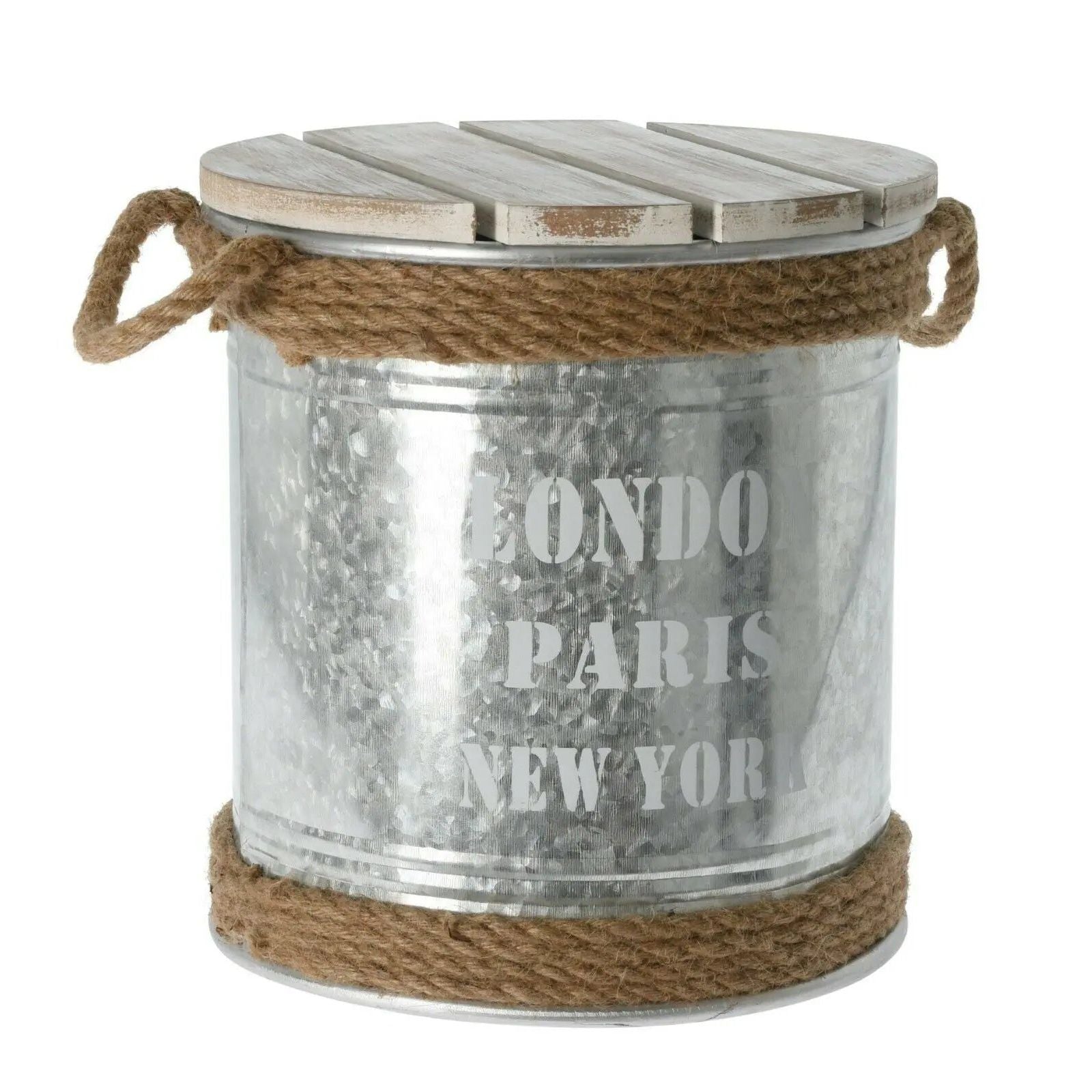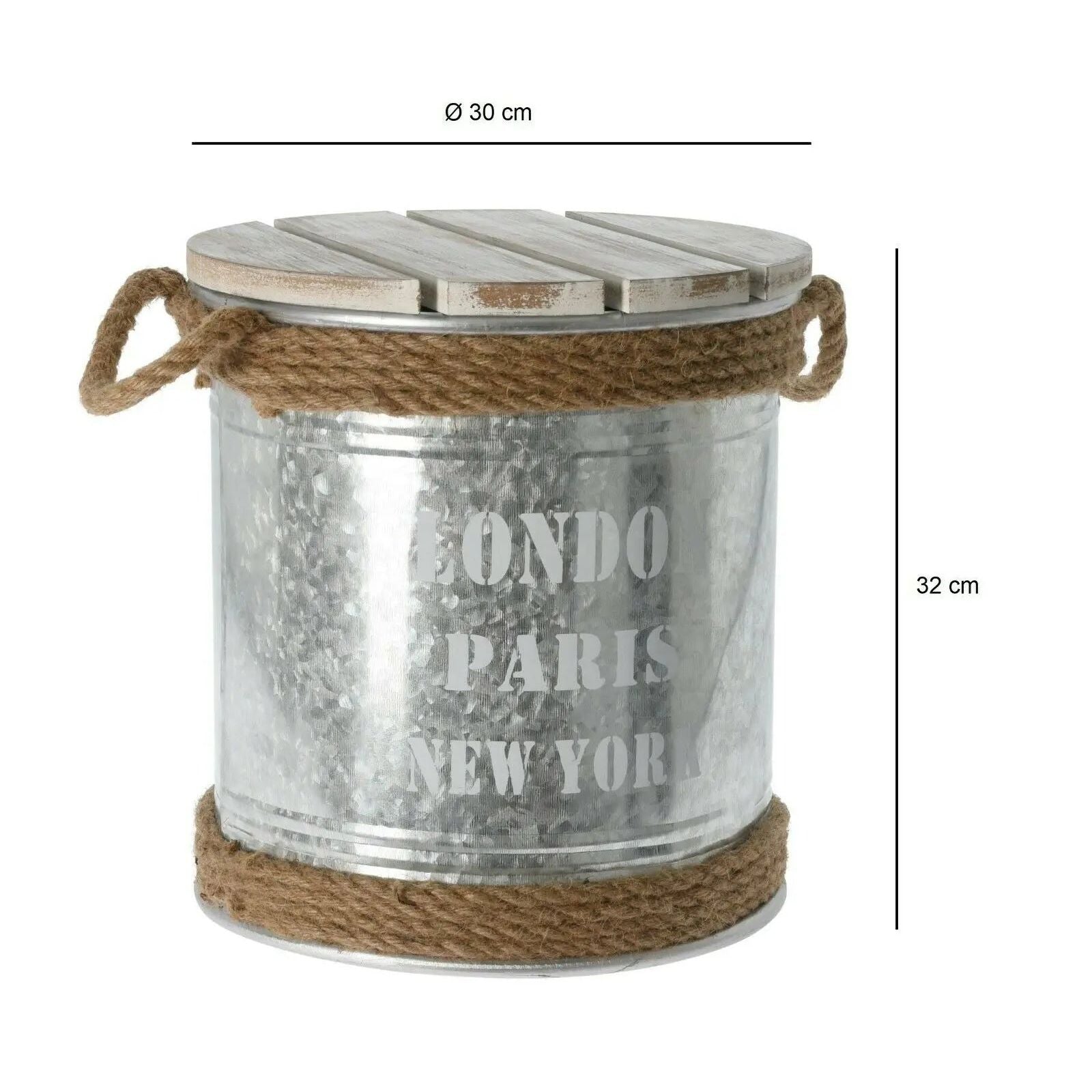 Beistelltisch mit Stauraum Metall Holz Hocker Tonne Industrie Ø 30 x Höhe 32 cm